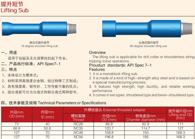 臺(tái)肩式提升短節(jié)